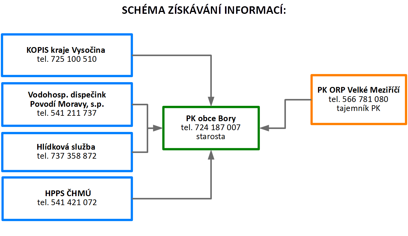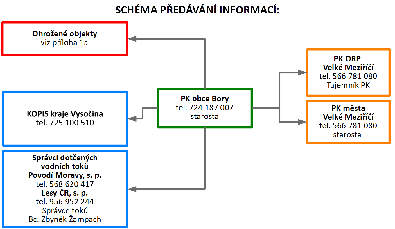 Zahájení činnosti povodňové komise obce Bory včetně důvodů se musí vždy zapsat (datum a čas) do povodňové knihy a vyrozumí se o tom:
