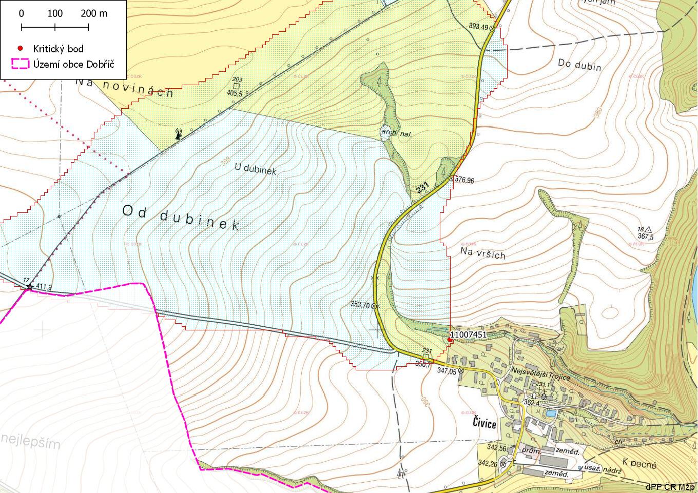 Charakteristika kritických bodů na území obce Dobříč