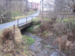 Na mostku silnice 31511 přes Knapovecký potok (ř. km 5,722) směrem k místní části Ústí nad Orlicí - Horní Houžovec.