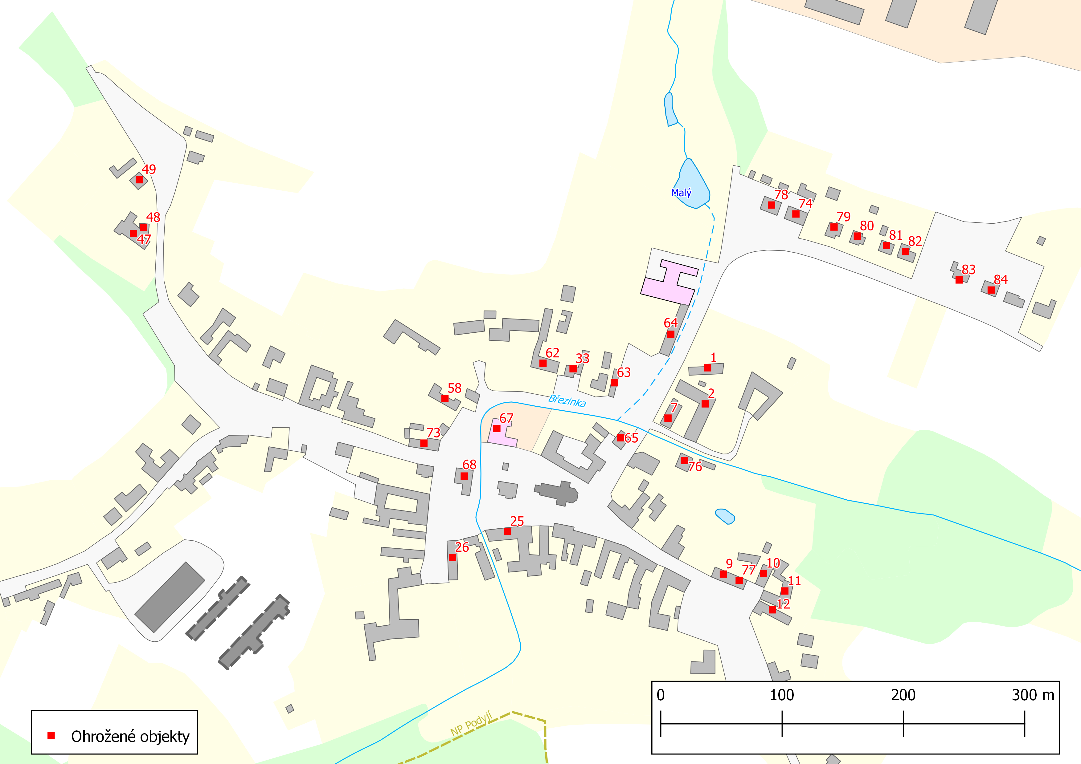 Tyto objekty je nutno varovat, případně evakuovat. » Objekty byly stanoveny především na základě historických zkušeností s povodněmi v obci.
