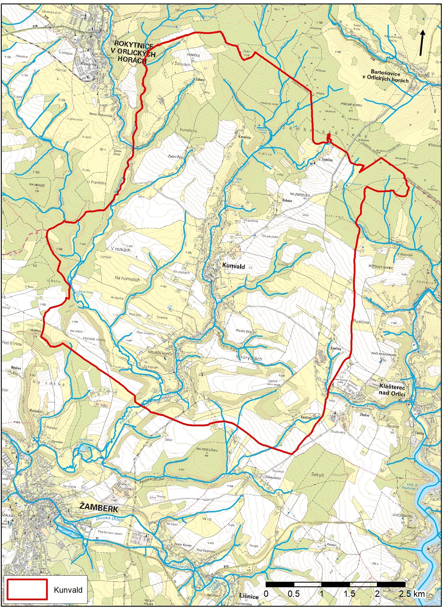 Městys Kunvald leží v podhůří Orlických hor v průměrné nadmořské výšce 530 m n. m. Nejvyšším bodem zájmového území je Zadní vrch, který leží ve výšce 657 m n. m. při severní hranici k.ú. Naopak nejnižší bod leží v údolí Rokytenky při jižní hranici k.ú. u Keprtova mlýna, který dosahuje nadmořské výšky 420 m.