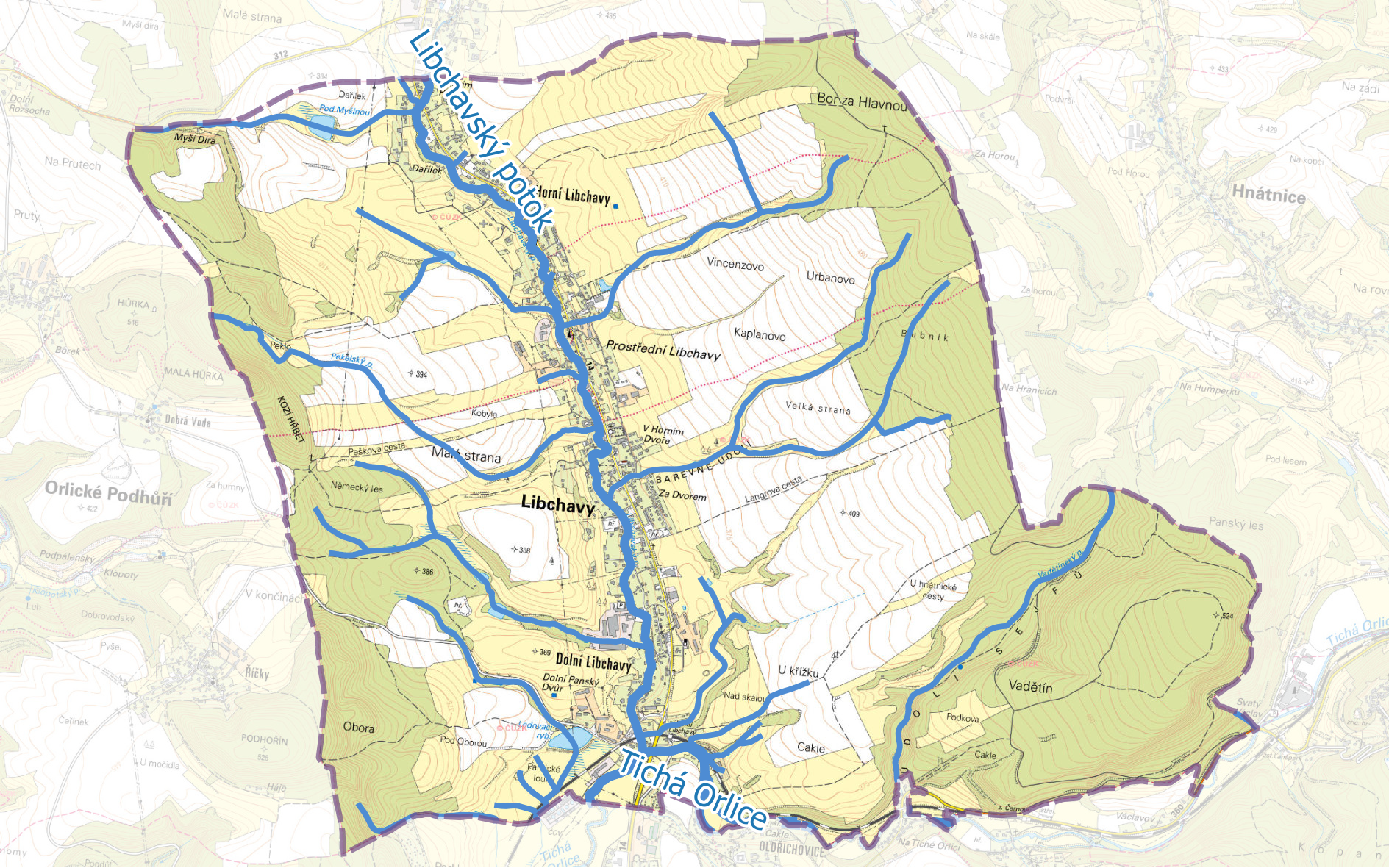 Nejvýznamnějšími toky v obci jsou Libchavský potok a Tichá Orlice.
