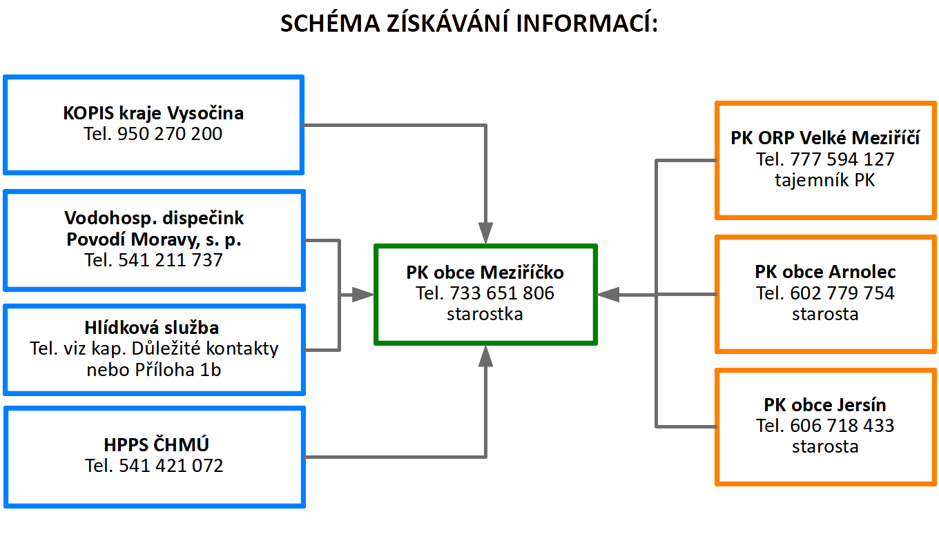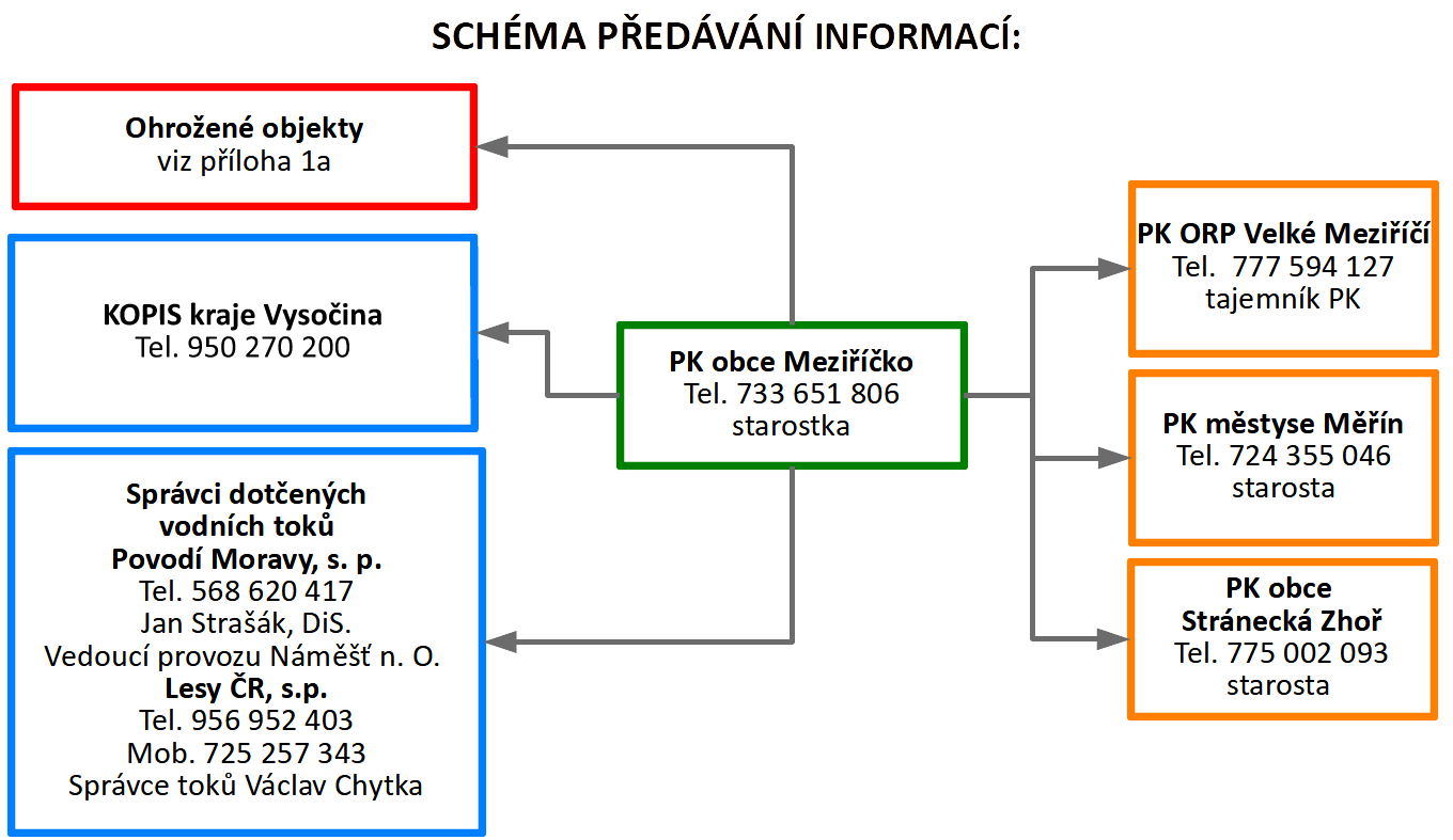 | 4 | Další vzestup hladin s nepříznivou prognózou | Svolání krizového štábu obce. | Předseda PK | KOPIS HZS Kraje Vysočina |