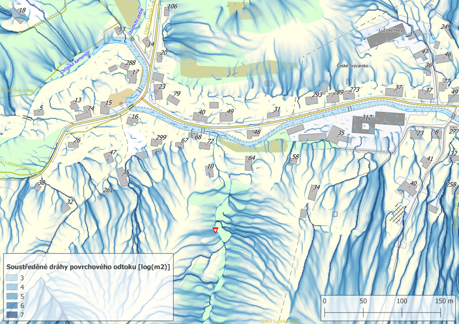 Místo ohrožení přívalovou povodní v západní části SO ORP Varnsdorf v území města Chřibská v katastrálním území Chřibská