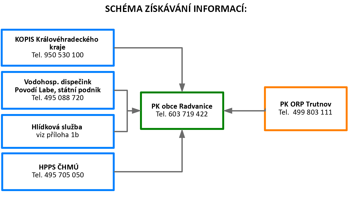 | 4 | Další vzestup hladin s nepříznivou prognózou | Svolání krizového štábu obce. | Předseda PK | KOPIS HZS Královéhradeckého kraje |