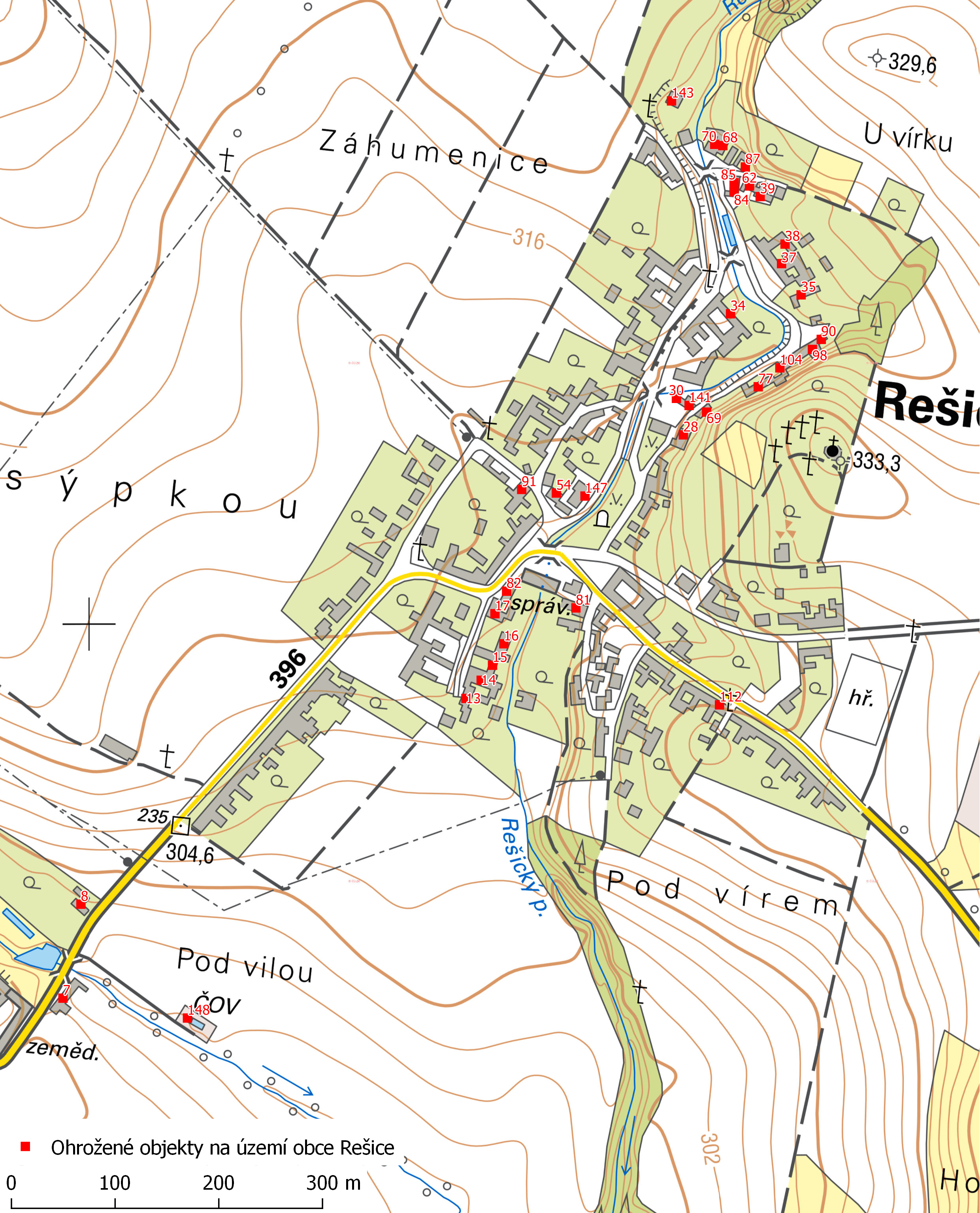 Tyto objekty je nutno varovat, případně evakuovat. » Objekty byly stanoveny především na základě historických zkušeností s povodněmi v obci.