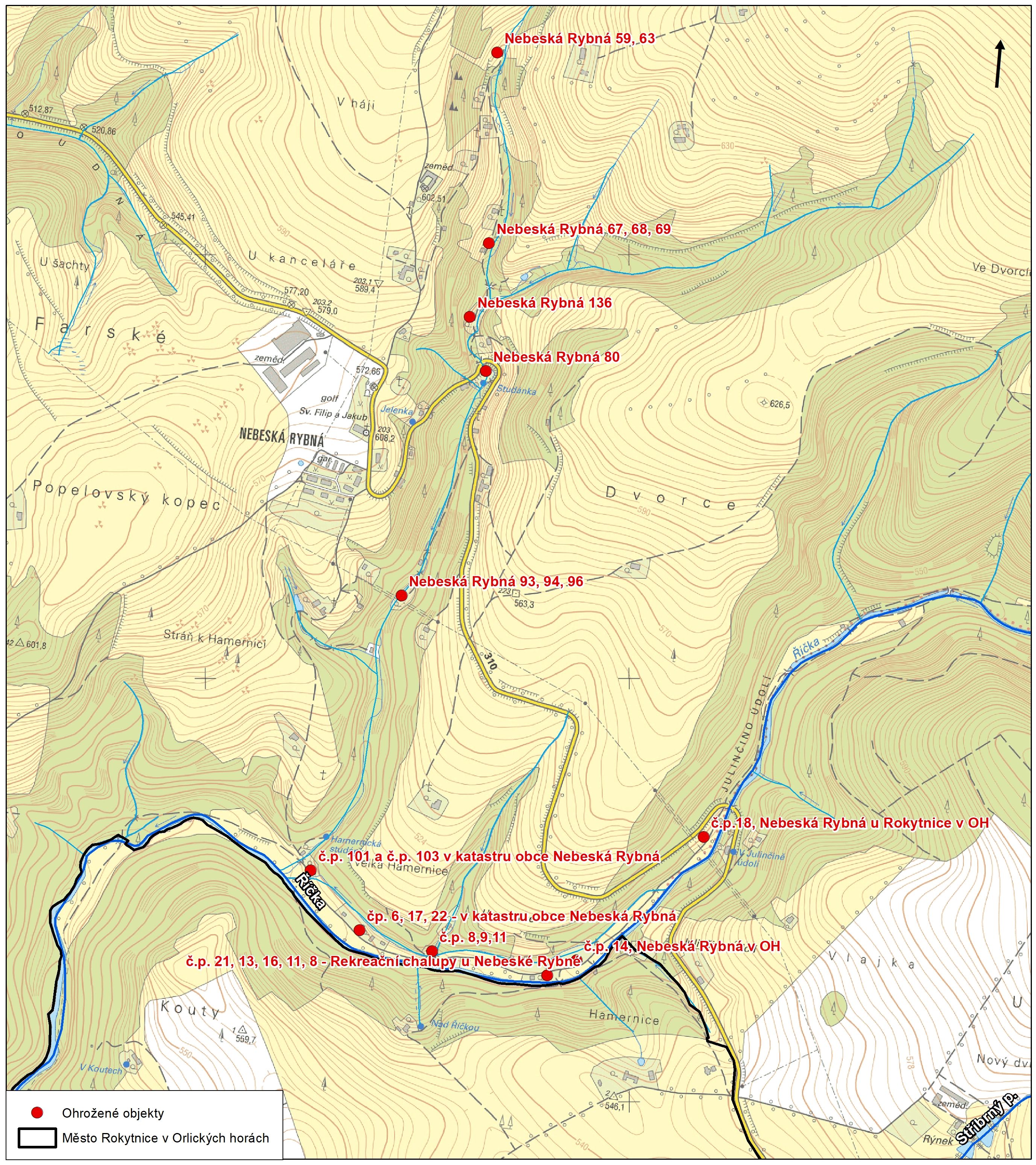 Ohrožené objekty v záplavovém území Rokytenky na území města Rokytnice v Orlických horách