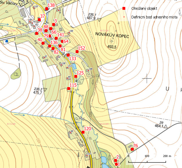 Ohrožené objekty v severní části obce Staré Heřminovy