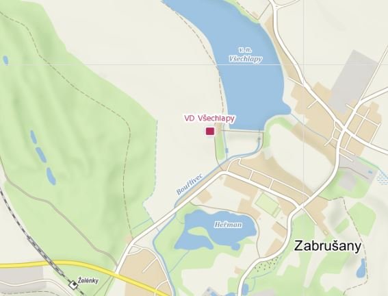Srážkoměrná stanice je součástí monitoringu VD Všechlapy v obci Zabrušany. Stanice je umístěna v blízkosti hráze vodní nádrže SZ od intravilánu Zabrušan. Provozovatelem srážkoměru je Povodí Ohře, státní podnik.