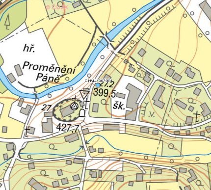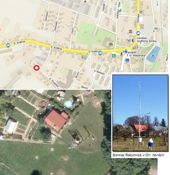 Srážkoměrná stanice se nachází v areálu kostela Proměnění Páně. Provozovatelem srážkoměru je ČHMÚ Hradec Králové.