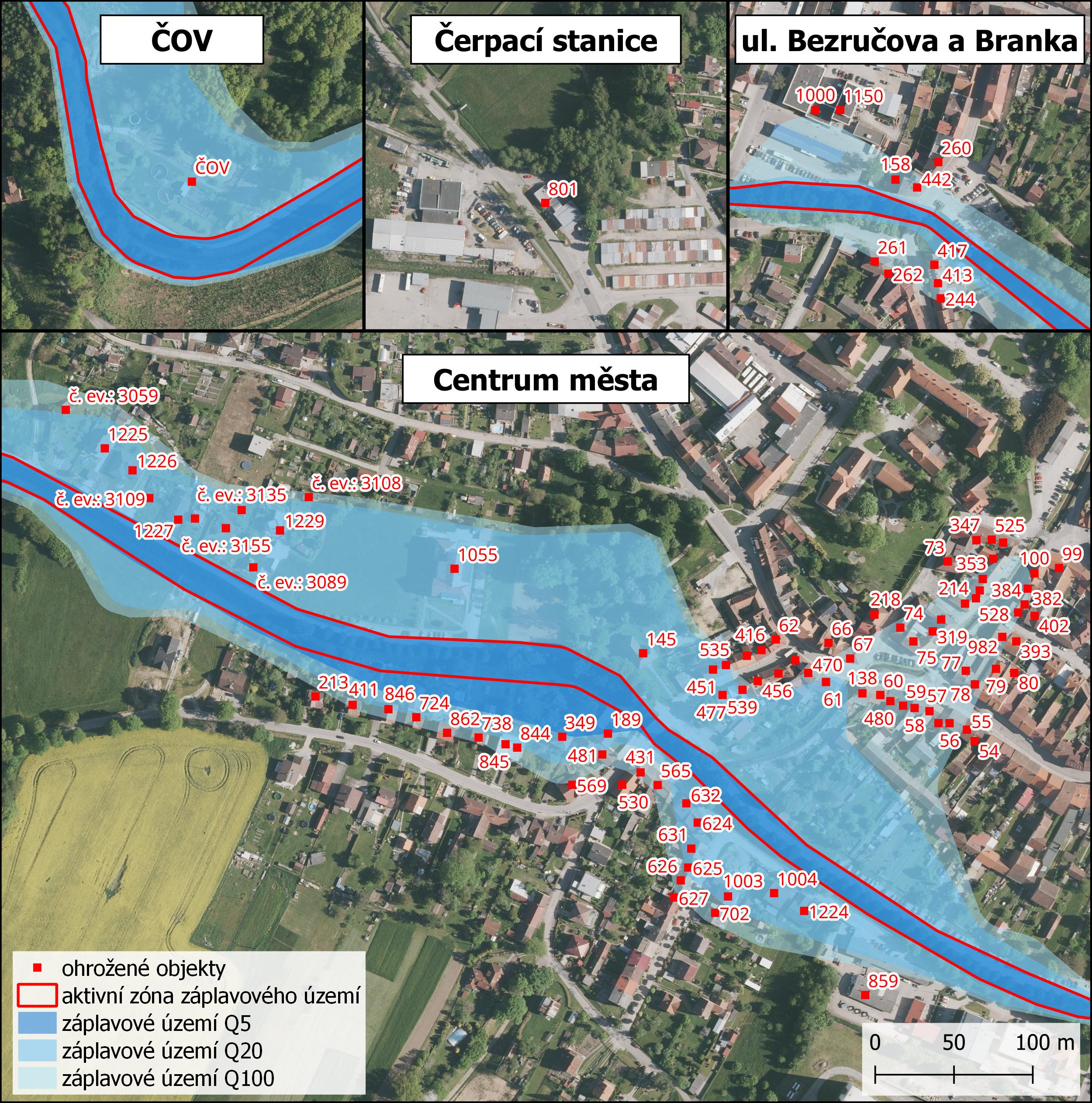 Tyto objekty je nutno varovat, případně evakuovat. » Objekty byly stanoveny především na základě historických zkušeností s povodněmi ve městě.
