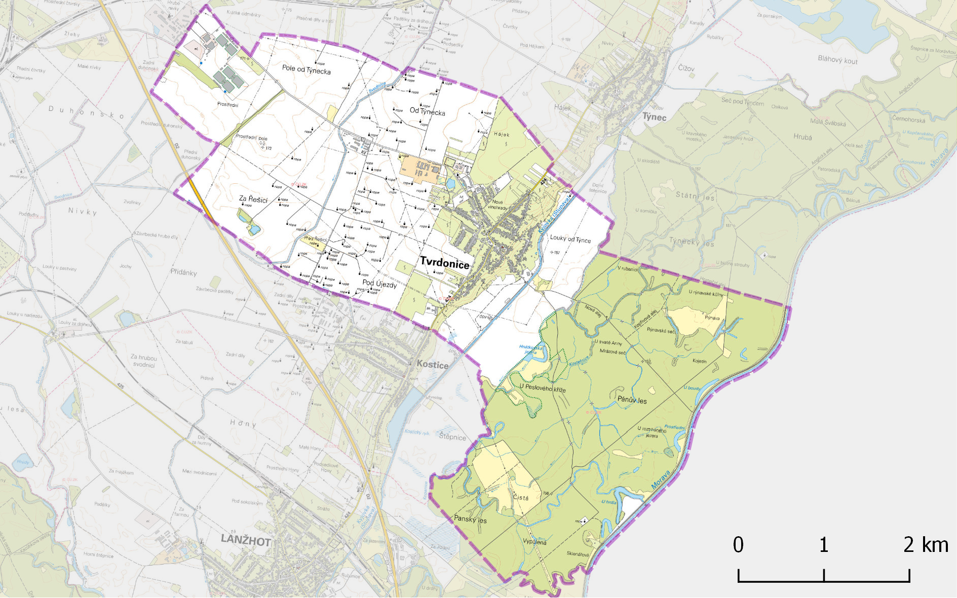 Využití pozemků v obci Tvrdonice (dle ČSÚ k 31. 12. 2015)