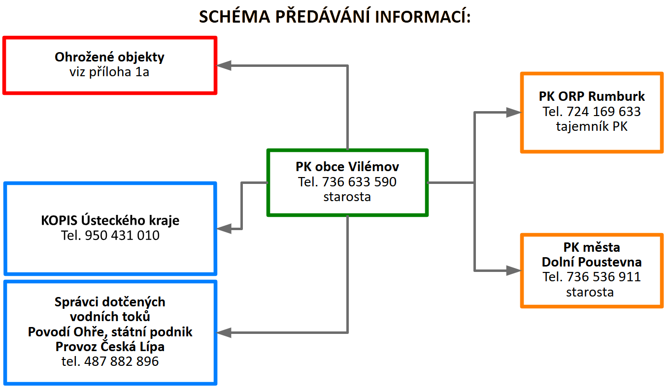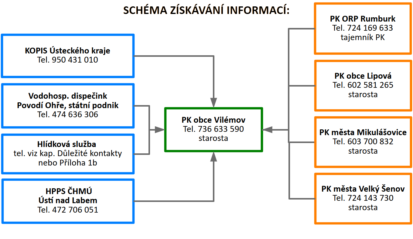 | 4 | Další vzestup hladin s nepříznivou prognózou | Svolání krizového štábu obce. | Předseda PK | KOPIS HZS Ústeckého kraje |